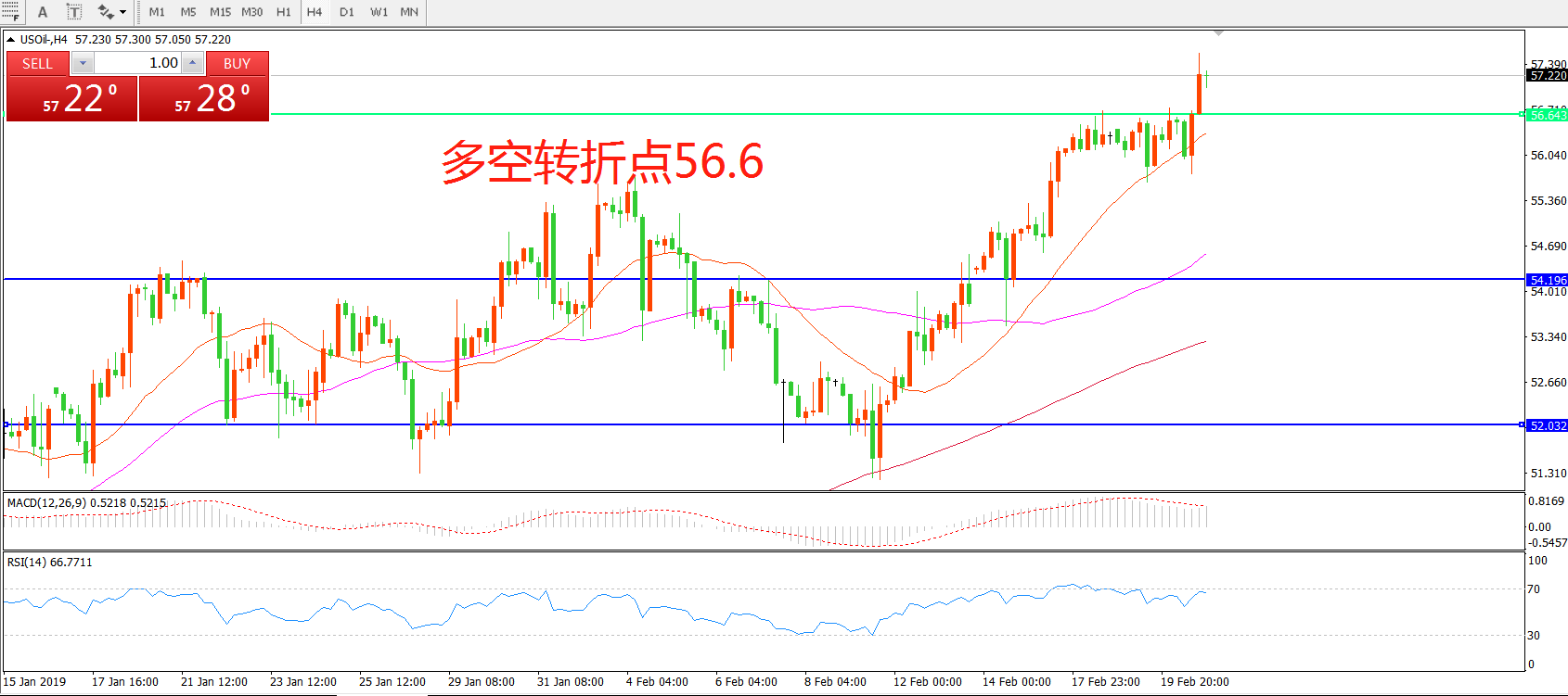 中美贸易谈判乐观情绪为原油等风险资产提供了支撑,但昨日公布的美联储会议纪要显示,几乎所有官员希望今年宣布停止缩表计划。这一表态要打压了油价的上行空间。周三(2月20日)美国石油协会公布报告称API原油库存增加126万通,增幅小于预期,利多油价。美国WTI原油周三(2月20日)收涨0.71美元,报57.16美元/桶。