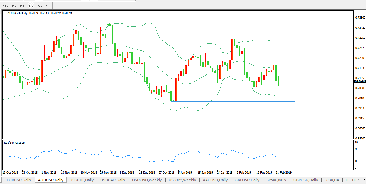 交易策略:在0.7145之下,看跌,目标价位为0.7050,然后为0.6990