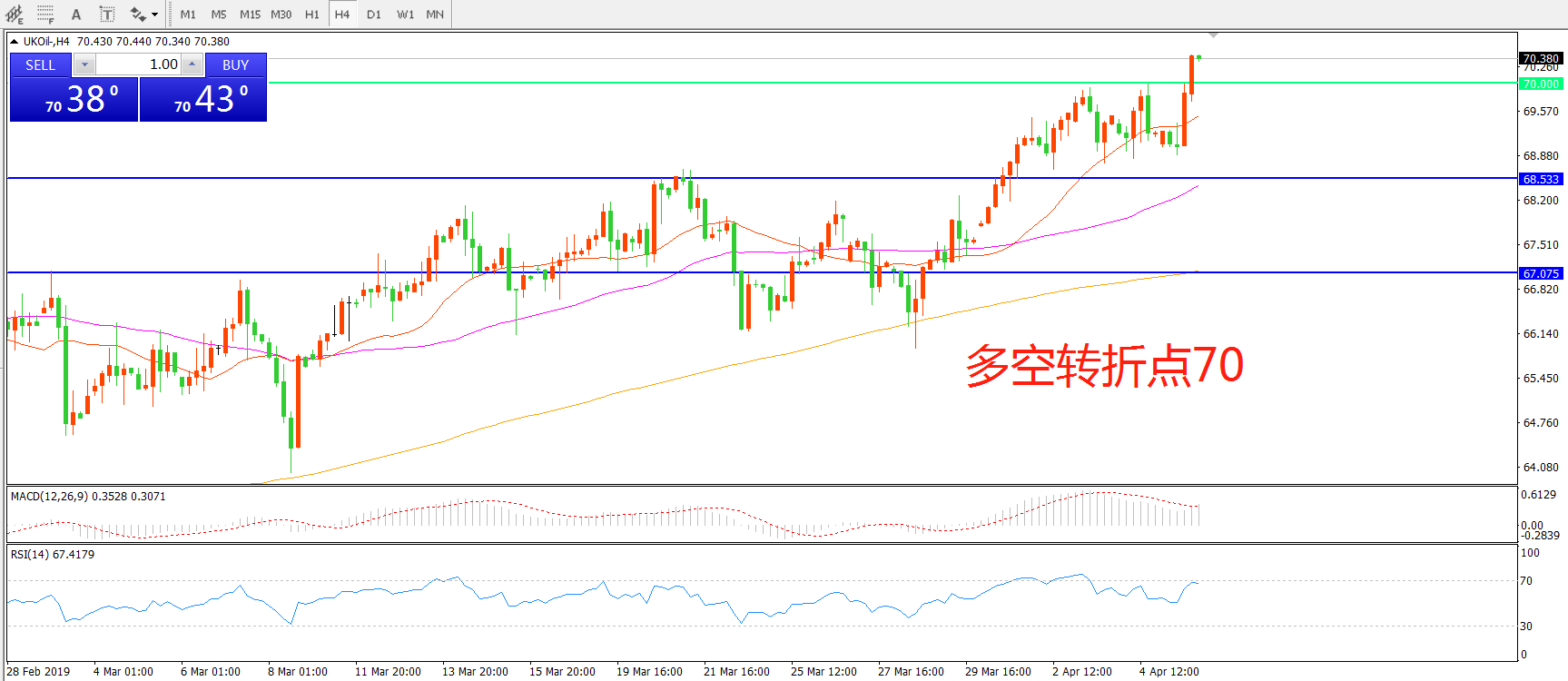 多空转折点:70.00