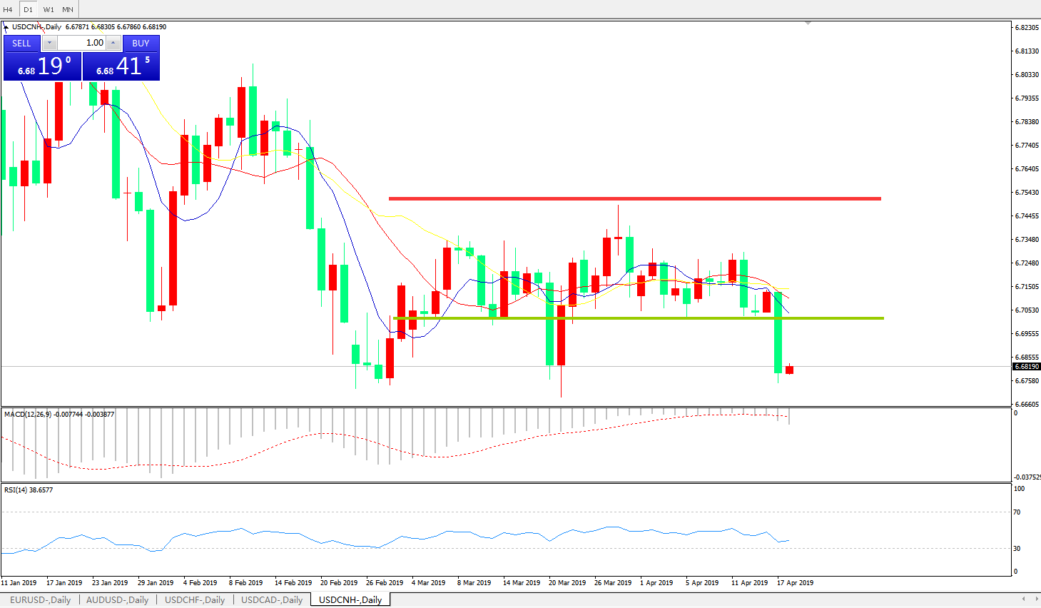 备选策略:在6.6990之上,看涨,目标价位为6.7845,然后为6.8185。