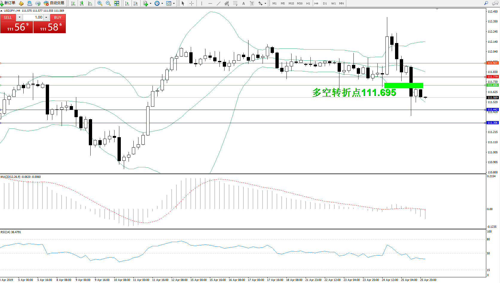 交易策略:111.695下方看跌,目标111.442、111.306