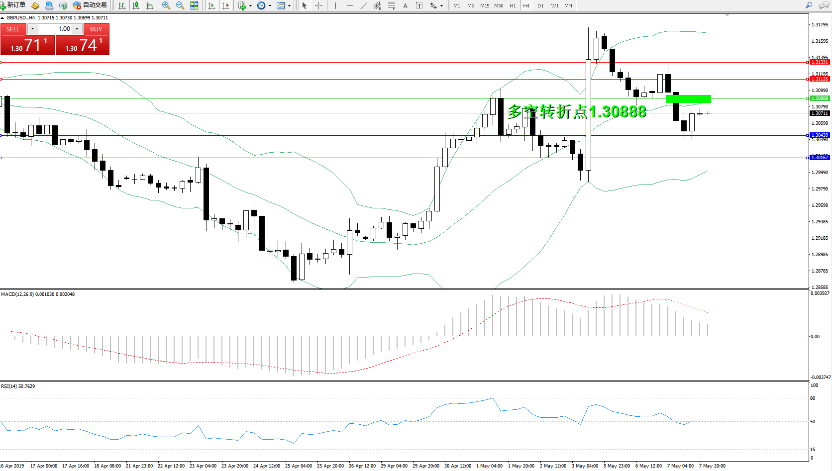 交易策略:1.30888下方看跌,目标1.30439、1.30167