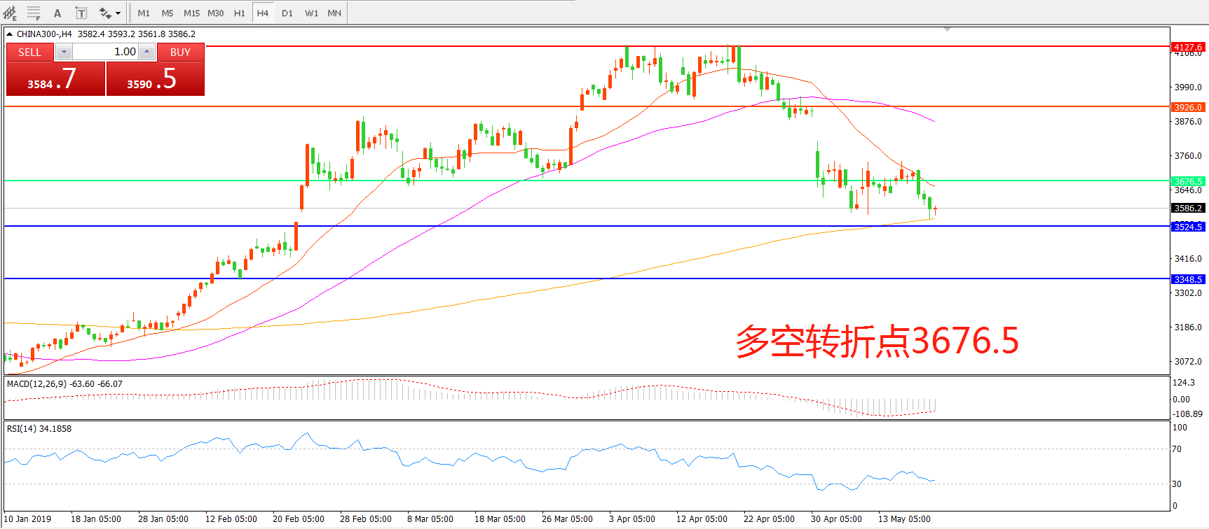 交易策略:在3676.50之下看跌,目标3524.50     3348.50