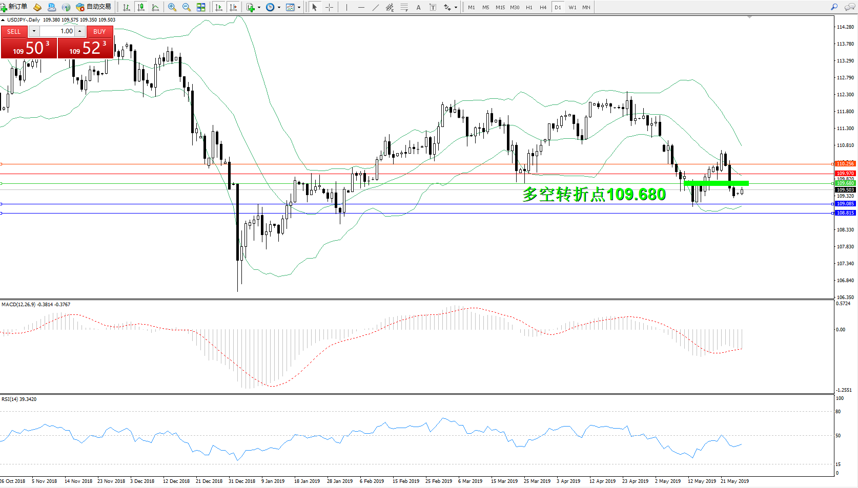 交易策略:109.680下方看跌,目标109.085、109.815