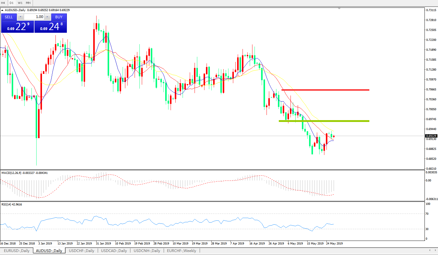 交易策略:在0.6960之下,看跌,目标价位为0.6900,然后为0.6830。