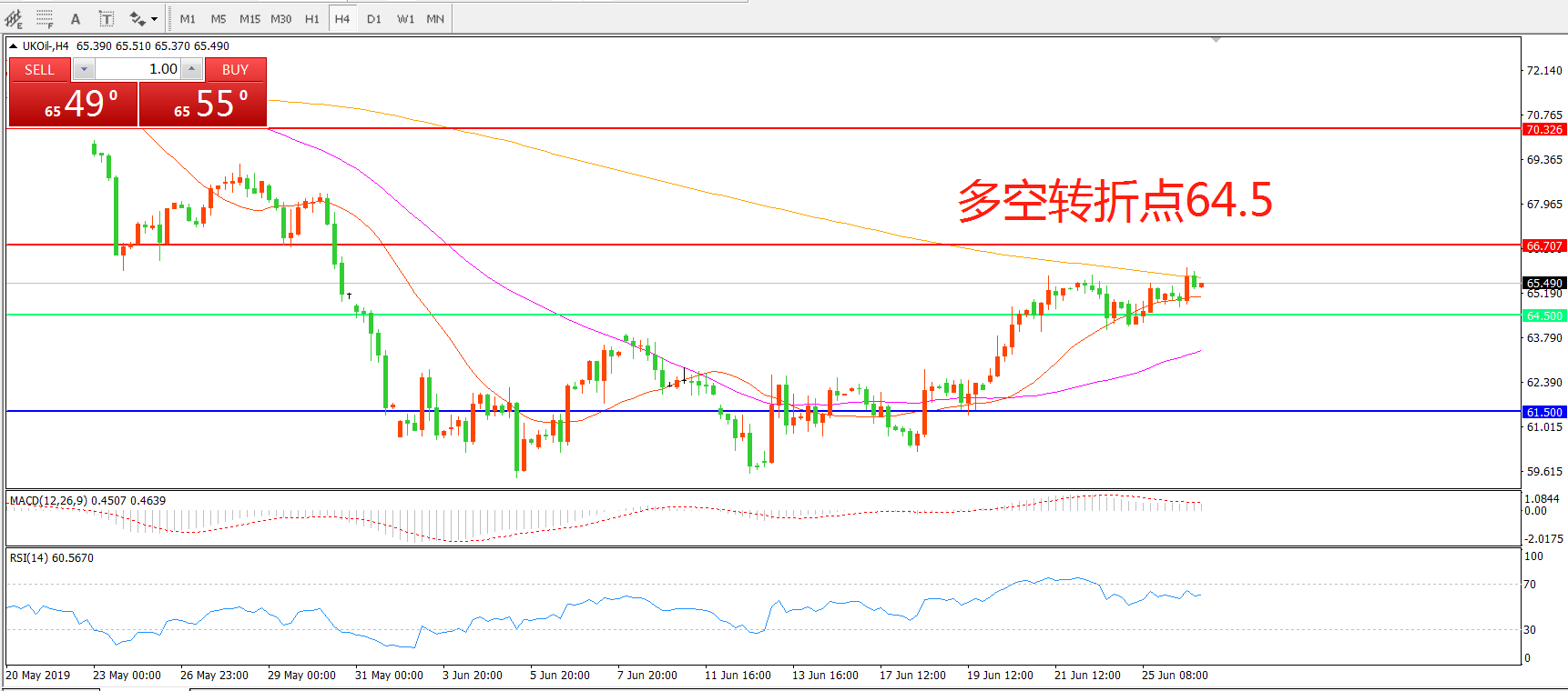 交易策略:在64.50之上看涨,目标66.70   70.00