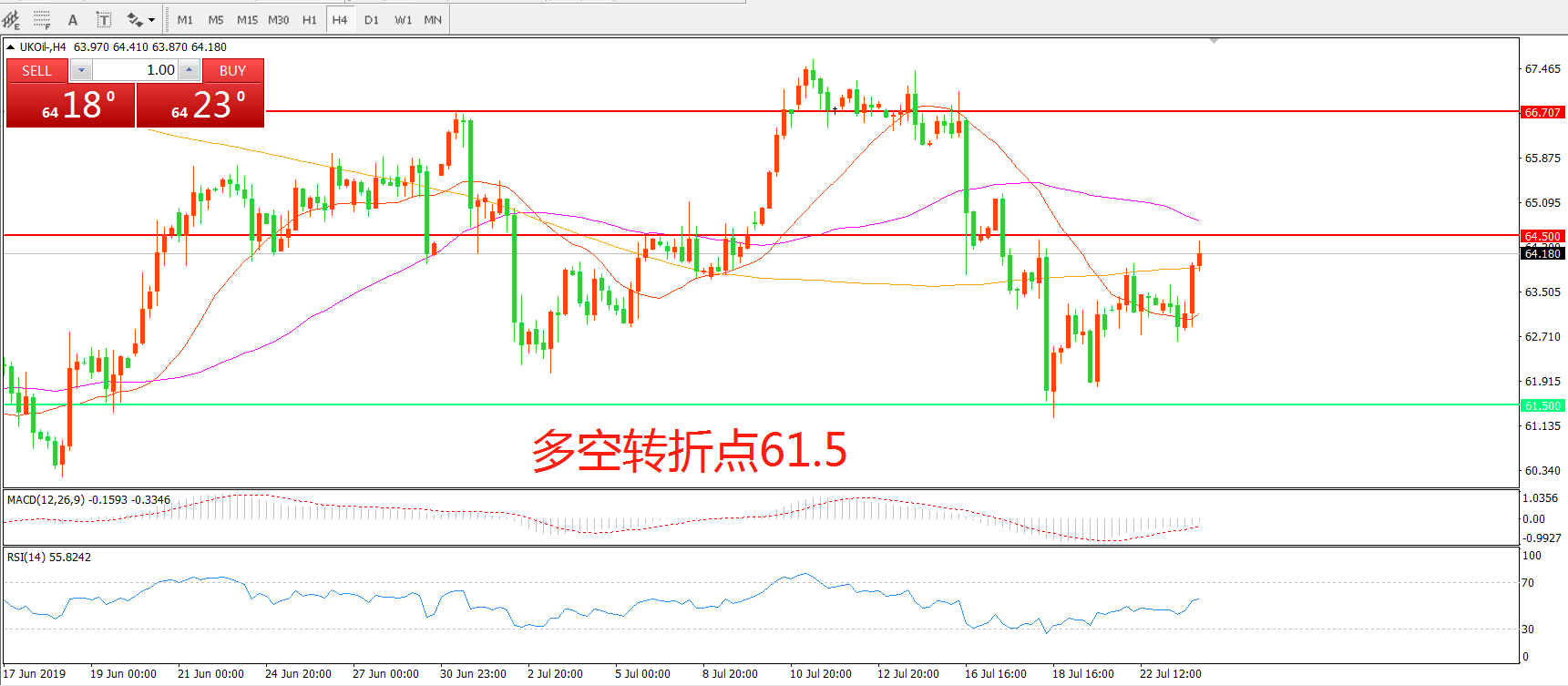 阻力位:64.50 66.70