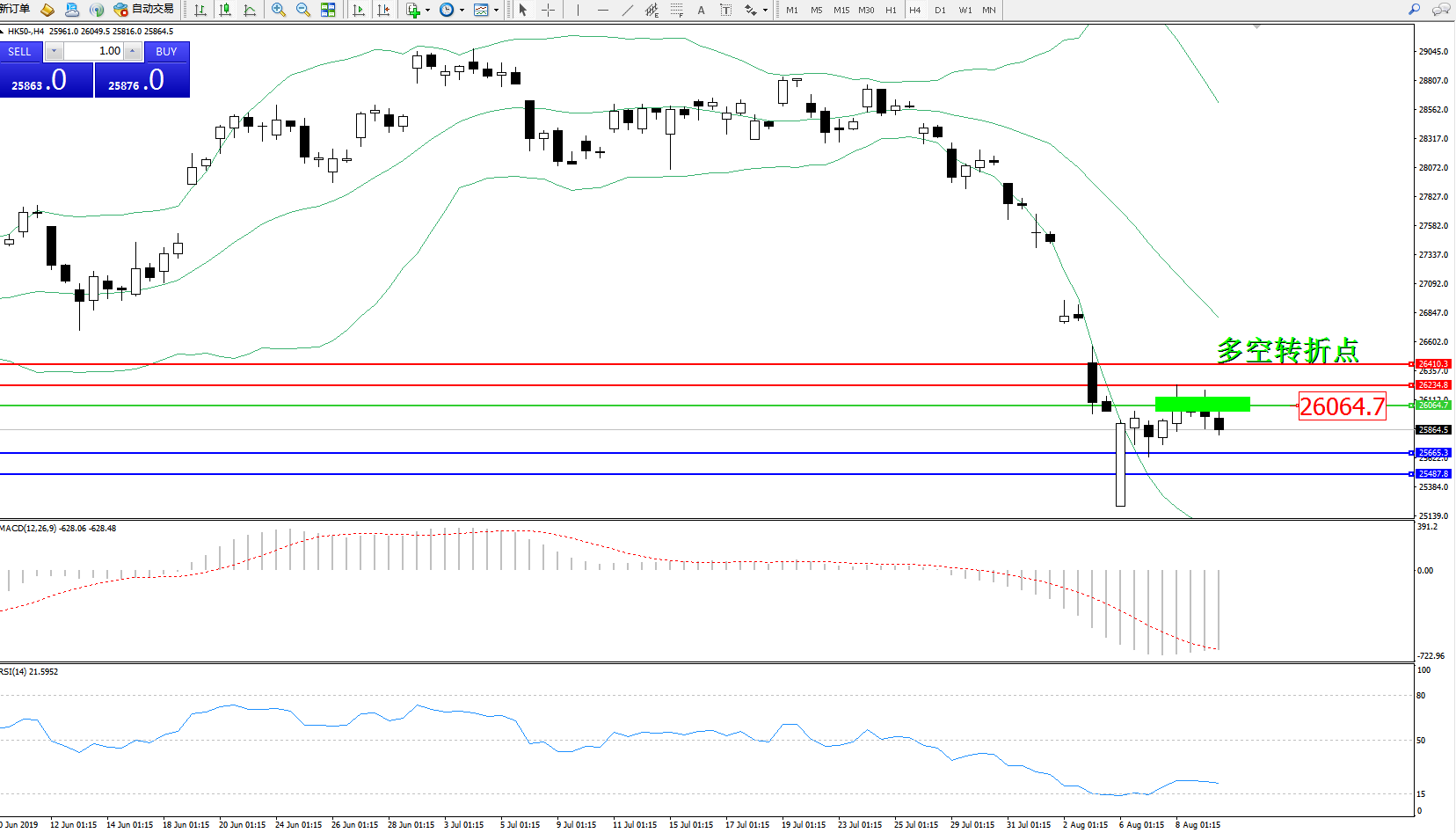 香港恒生指数89日(周五)收盘下跌181.47点,跌幅0.69%,报25939.30点;美联储再度降息的预期升温,隔夜美股强势大涨,整体外围市场氛围较好。股指高开低走,但在市况不明朗及仅憧憬减息的情况下,持续拖累港股的负面因素仍未除,恒指短期内恐仍将维持这个局势。港股总体形势已经在偏向好的方向在发展,今日只要能带量突破5日均线,那么市场的情绪又会被点燃。不过,港股于月初急跌后,连日上演反弹戏码,属于预期之内的技术反弹,而持续拖累港股的负面因素仍未除,恒指短期难转势,投资者需要为大市有反弹无升势做好准备。