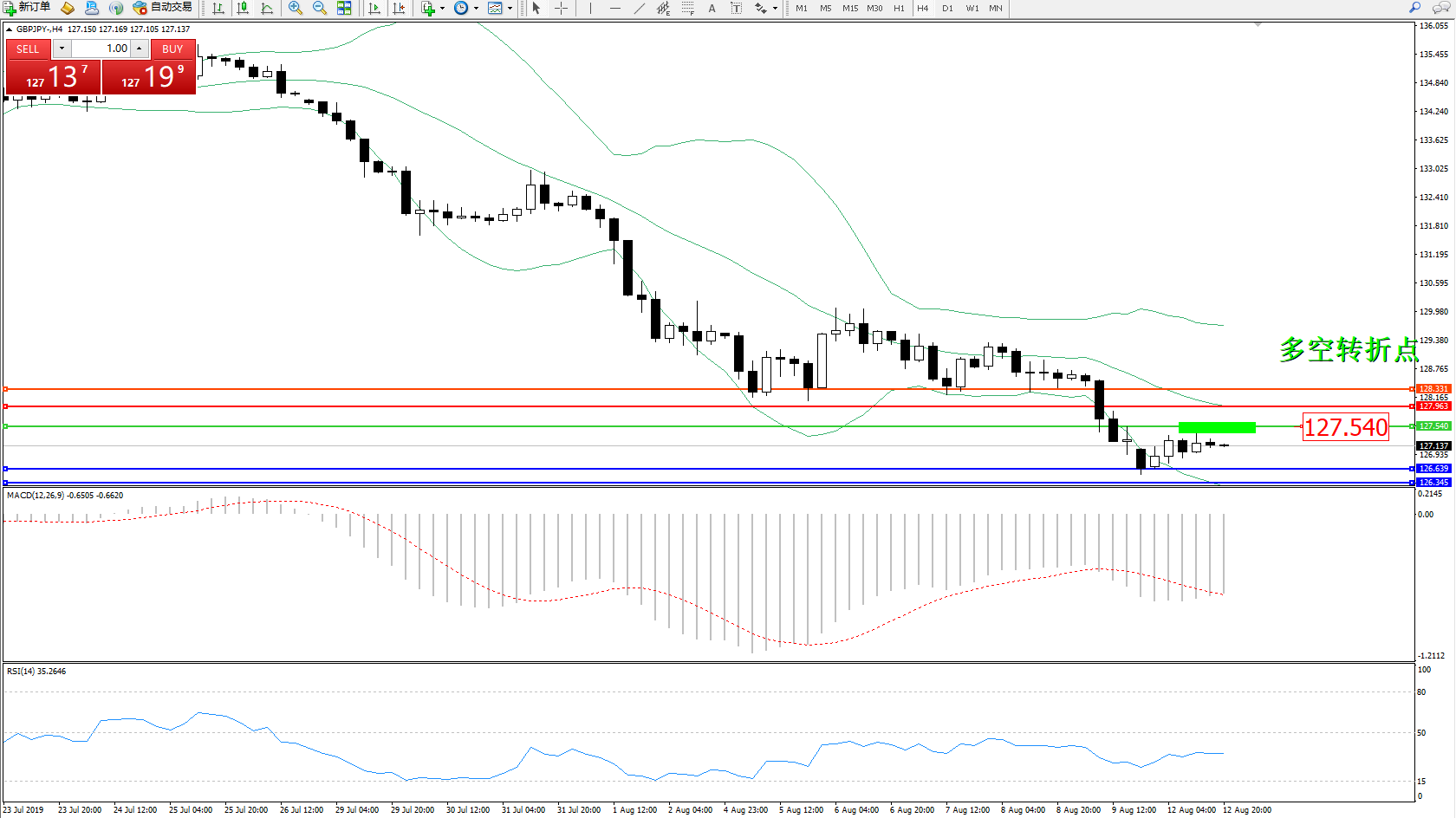 交易策略:127.540下方看跌,目标126.639126.345