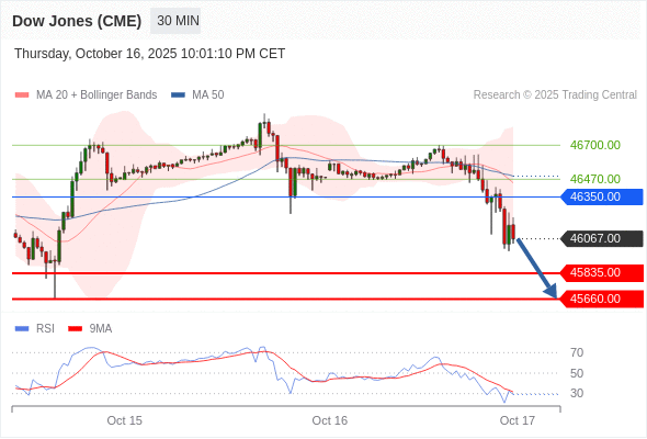 在 46350.00 之下,看跌,目标价位为 45835.00 ,然后为 45660.00 。
