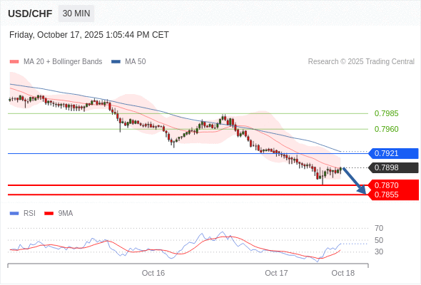 美元/瑞郎 当日内: 短期关键阻力位在0.7940。