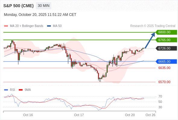 在 6665.00 之上,看涨,目标价位为 6765.00 ,然后为 6800.00 。