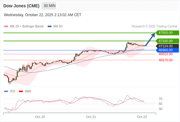 在 46960.00 之上,看涨,目标价位为 47330.00 ,然后为 47650.00 。
