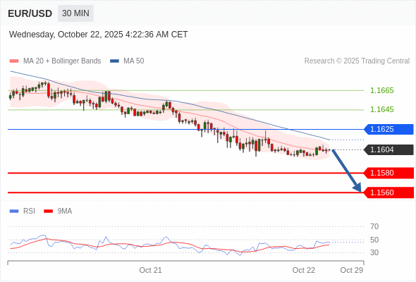 在 1.1625 之下,看跌,目标价位为 1.1580 ,然后为 1.1560 。