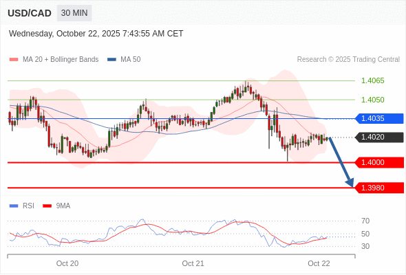 在 1.4035 之下,看跌,目标价位为 1.4000 ,然后为 1.3980 。