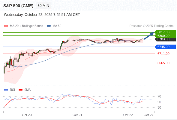 在 6745.00 之上,看涨,目标价位为 6800.00 ,然后为 6817.00 。