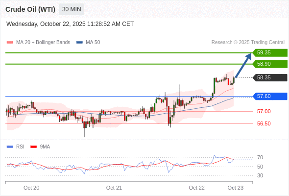 在 57.60 之上,看涨,目标价位为 58.90 ,然后为 59.35 。
