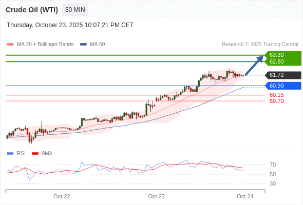 在 60.90 之上,看涨,目标价位为 62.80 ,然后为 63.30 。