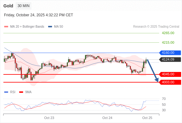 黄金现货 当日内: 短期关键阻力位在4160.00。