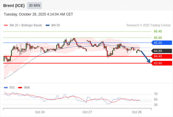 在 65.55 之下,看跌,目标价位为 64.45 ,然后为 63.90 。