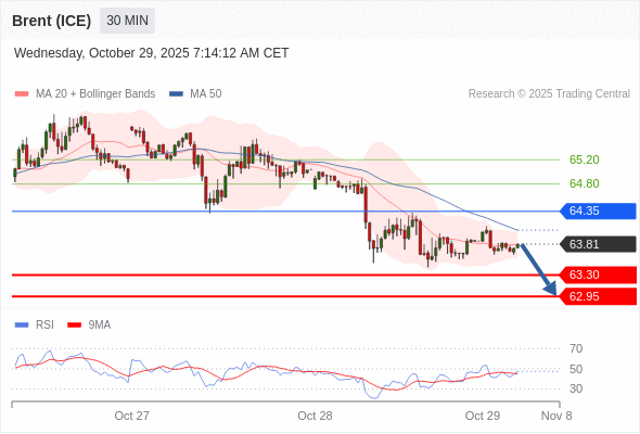 在 64.35 之下,看跌,目标价位为 63.30 ,然后为 62.95 。