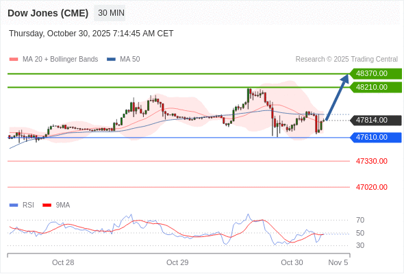 在 47610.00 之上,看涨,目标价位为 48210.00 ,然后为 48370.00 。