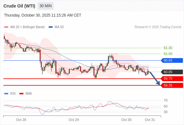 在 60.65 之下,看跌,目标价位为 59.70 ,然后为 59.35 。