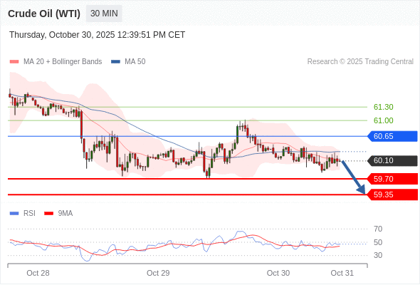 在 60.65 之下,看跌,目标价位为 59.70 ,然后为 59.35 。
