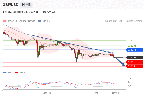 在 1.3175 之下,看跌,目标价位为 1.3115 ,然后为 1.3095 。