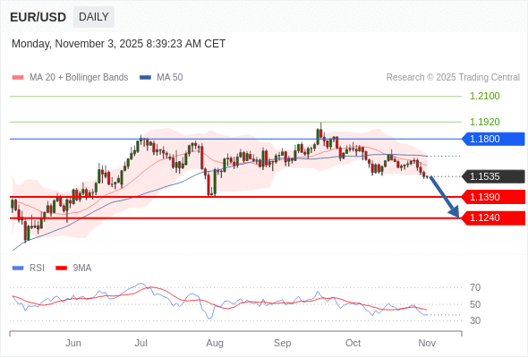 在 1.1800 之下,看跌,目标价位为 1.1390 ,然后为 1.1240 。