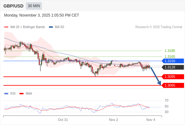 交易策略: 在 1.3150 之下,看跌,目标价位为 1.3095 ,然后为 1.3065 。