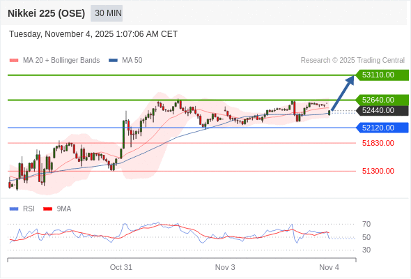 日经225股指期货 (OSE) 当日内: 目标位为52640.00。