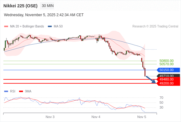 在 50150.00 之下,看跌,目标价位为 49480.00 ,然后为 49200.00 。