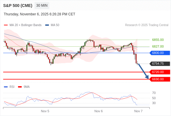 交易策略: 在 6800.00 之下,看跌,目标价位为 6720.00 ,然后为 6690.00 。