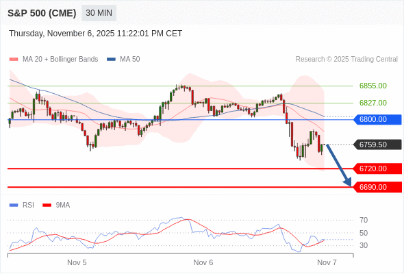 交易策略: 在 6800.00 之下,看跌,目标价位为 6720.00 ,然后为 6690.00 。