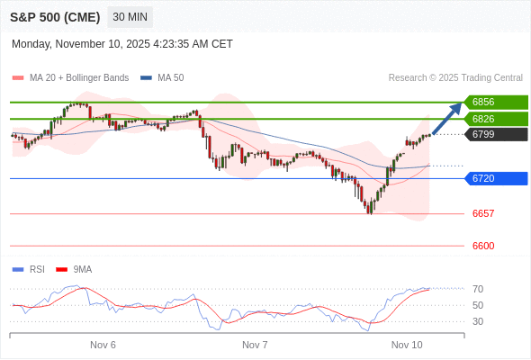 在 6720 之上,看涨,目标价位为 6826 ,然后为 6856 。