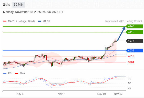 在 4035 之上,看涨,目标价位为 4115 ,然后为 4140 。