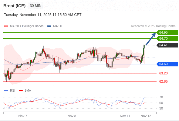 在 63.60 之上,看涨,目标价位为 64.70 ,然后为 64.95 。