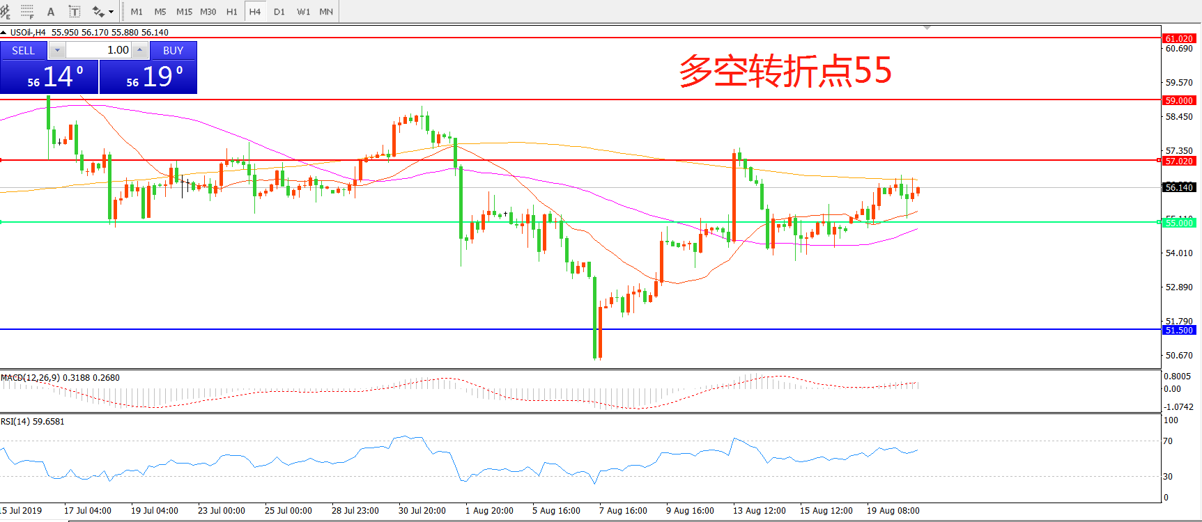 交易策略:在55.00之上看涨,目标57.00 59.00