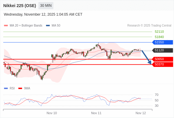 在 51550 之下,看跌,目标价位为 50650 ,然后为 50370 。
