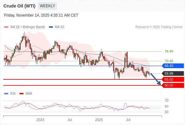 在 66.40 之下,看跌,目标价位为 55.00 ,然后为 50.00 。