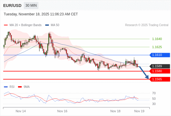在 1.1610 之下,看跌,目标价位为 1.1580 ,然后为 1.1565 。