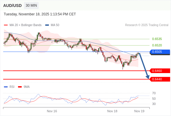交易策略: 在 0.6505 之下,看跌,目标价位为 0.6460 ,然后为 0.6440 。