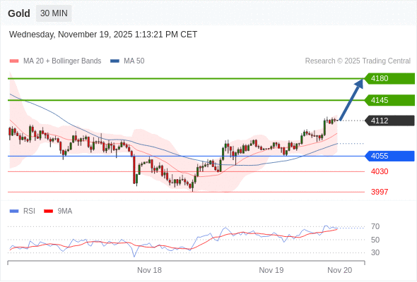 在 4055 之上,看涨,目标价位为 4145 ,然后为 4180 。