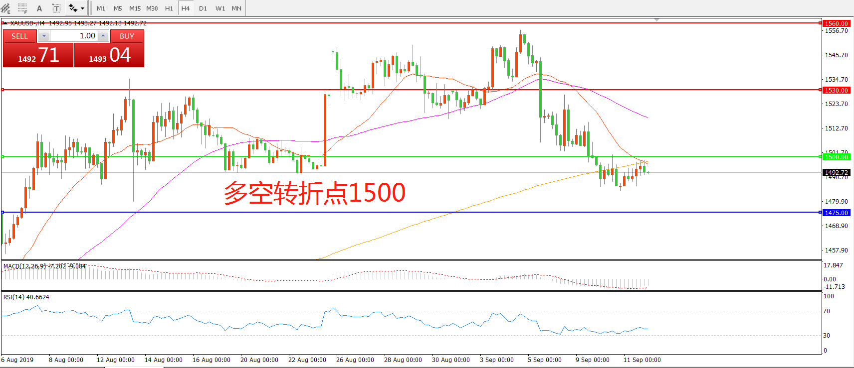 交易策略:在1500.00之下看跌,目标1475.00 1450.00