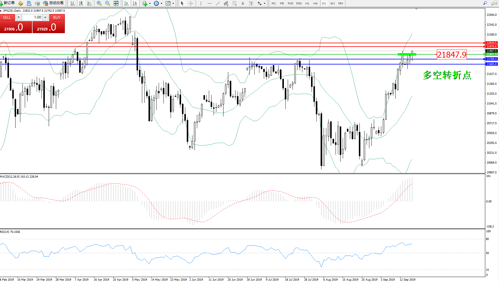 日经225指数9月18日(周三)收盘下跌24.82点,跌幅0.11%,报21976.50点。从近期的数据来看,日本经济增长势头放缓,通胀走弱,似乎增强了进一步放松货币政策的理由,但是否会倾向于现在就启动新的刺激计划仍值得怀疑。日本10年期国债收益率已重返日央行的非正式目标区间(+/-0.20%),且近期日元强度温和,这使得日央行有更多时间保持观望。预计日央行本周只会对有关利率的前瞻指引作出修正,当前表述为“至少在2020年春季之前维持超低的利率”。但如果下个月消费税上调后需求减弱,日央行将不得不采取实质性的宽松政策。隔夜美联储公布最新的9月利率决议,美联储如期降息25基点,利率调整至1.75-2.00%,符合预期。关注今日日央行决议。
