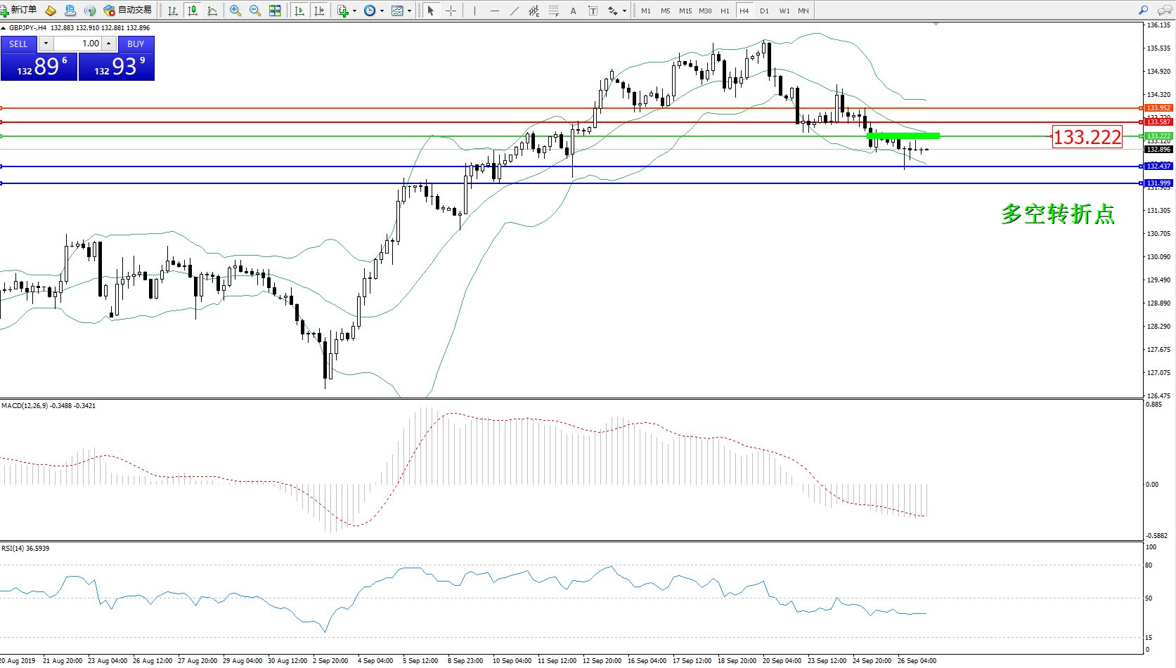 交易策略:133.222下方看跌,目标132.437、131.999