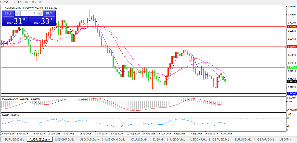 澳元兑美元在周一亚洲时段承压走低,表现领跌于G10发达经济体货币,因美元指数重新走强,导致澳元兑美元汇价在此前连续三个交易日大幅反弹后丧失了进一步上攻的动能;与此同时,投资者在周末过后对于全球范围内经济前景仍然倾向悲观,这对于高风险商品系货币澳元仍是利空。而在此后中国内地金融市场将于周二恢复交易之际,考虑到澳洲经济与中国市场的高度关联性,投资者也相对谨慎地放弃了进一步追高; 并且,从更大尺度的趋势来看,上周后半段澳元的反弹只是短线技术性回调而已,在宏观大格局并未彻底好转的状况下,澳元兑美元后市仍将延续中长期下行趋势,短线阻力下看5日均线支撑位0.6735,跌破后将宣告技术性反弹走势结束,并进一步重新下探0.67关口。