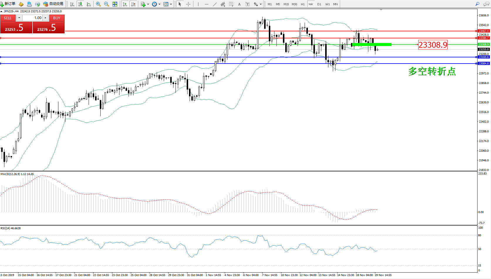 日经225指数1119日(周二)收盘下跌125.26点,跌幅0.53%,报23291.50点。日本央行行长黑田东彦:一旦达到物价目标,日本央行将使政策正常化,地区银行若要提高业务前景的可能选项为与其他产业企业合并、结盟与联盟,当央行在促进货币宽松以达成物价目标时,财政政策的刺激效果将会提高,政策混合指的是一般意义上的政策组合  ,财政政策和货币政策结合更能产生刺激作用,目前有限的数据显示消费税上调影响较小,不认为政策选项是无限的,日本央行有多种措施来放松政策,可以将它们结合起来,或者部署它们的增强版本,未来日本央行还有进一步降息的空间,日本央行还没有达到债券购买的限额,市场上还有日本央行可以买进的日债,在考虑进一步宽松政策时必须权衡利弊,只有少数委员认为日本央行无法将利率降至-0.1%以下,从未说过日本央行可以无限制地降息,有可能降低利率,日本央行有采取更多政策措施的空间,将继续竭尽全力实现价格目标。