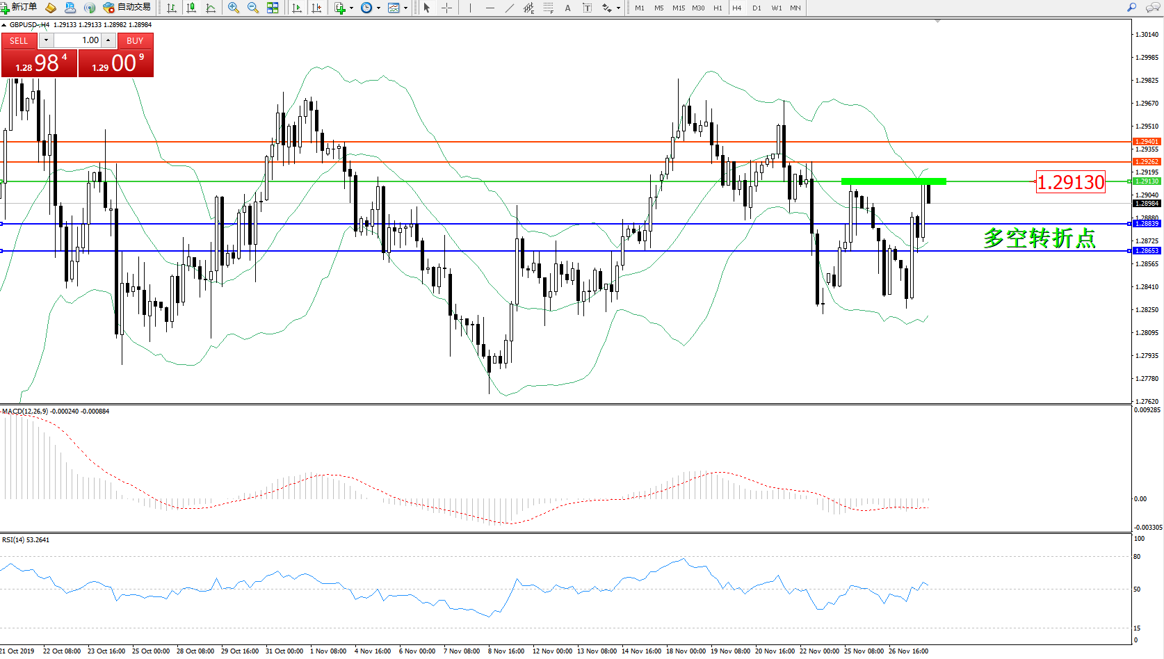 交易策略:1.29130下方看跌,目标1.288391.28653